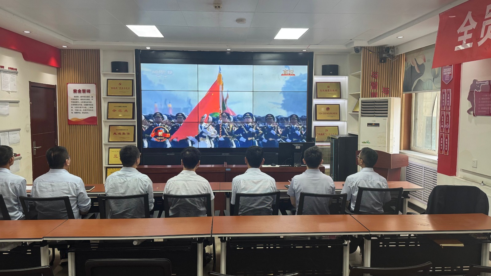 歷史燭照未來,精神永續(xù)傳承。為深切緬懷在抗日戰(zhàn)爭中英勇獻身的革命先烈,大力弘揚偉大的抗戰(zhàn)精神,引導(dǎo)全體黨員、職工銘記光輝歷史、堅定理想信念、強化責(zé)任擔(dān)當(dāng),9月3日,機運工區(qū)黨支部組織開展了“銘記歷史偉業(yè),傳承紅色基因”主題黨日活動,組織全體黨員集中觀看紀(jì)念中國人民抗日戰(zhàn)爭暨世界反法西斯戰(zhàn)爭勝利80周年閱兵儀式現(xiàn)場直播。上午九時整,機運工區(qū)全體黨懷著無比崇敬與激動的心情,目光齊聚屏幕。伴隨著激昂雄壯的國歌奏響,鮮艷的五星紅旗在天安門廣場冉冉升起,大家心潮澎湃,肅然起敬。隨后,規(guī)模宏大、氣勢磅礴的閱兵式正式開始。屏幕上,一個個整齊劃一、威武雄壯的徒步方隊,邁著鏗鏘有力、撼人心魄的步伐走過檢閱臺,堅毅的眼神、挺拔的身姿,充分展現(xiàn)了新時代軍人聽黨指揮的忠誠品格和能打勝仗的過硬本領(lǐng);一列列代表著國家科技實力與國防現(xiàn)代化建設(shè)最新成果的裝備方隊,鐵流滾滾,氣勢如虹,尖端武器依次亮相,彰顯了捍衛(wèi)國家主權(quán)、安全、發(fā)展利益的堅定決心與強大能力;雄鷹呼嘯,劃破長空,戰(zhàn)機編隊以精準(zhǔn)的隊形和磅礴的氣勢接受檢閱,描繪出壯美的藍天畫卷,宣示著捍衛(wèi)國家領(lǐng)空安全的鋼鐵意志。整個閱兵過程,秩序井然、威武雄壯、氣勢恢宏,生動詮釋了人民軍隊“聽黨指揮、能打勝仗、作風(fēng)優(yōu)良”的強軍目標(biāo),全方位展示了在黨的堅強領(lǐng)導(dǎo)下,國家日益強大的綜合國力和維護世界和平的堅定信念。屏幕前,黨員們?nèi)褙炞ⅲ瑹o不被這震撼人心的場面所感染,民族自豪感與榮譽感油然而生,現(xiàn)場不時響起由衷的贊嘆和熱烈的掌聲。通過本次“銘記歷史偉業(yè),傳承紅色基因”主題黨日活動,機運工區(qū)黨支部全體黨員經(jīng)歷了一次深刻的精神淬煉與思想升華。大家的歷史使命感、民族自豪感、崗位責(zé)任感得到顯著增強,紛紛表示以更加飽滿昂揚的精神狀態(tài)、更加求真務(wù)實的工作作風(fēng)、更加開拓創(chuàng)新的進取意識,恪盡職守,銳意進取,全力以赴保障原煤運輸安全高效,為工區(qū)及公司的持續(xù)高質(zhì)量發(fā)展貢獻全部力量!
